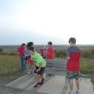 The T-LIGHTS traveled to Oregon Trail Nature Park on September 29, for a hike, games, and BBQ supper. The park, located north of Belvue, is managed by Western Resources. It contains 3 separate trails, including the Sea of Grass trail which stretches to the top ridge of the park and offers a spectacular view of the Jeffrey Energy Center and its cooling lake to the north, and the Kaw River valley to the south. Many species of birds and small animals can be spotted at the park. The park’s centerpiece is a large silo which has been painted with a three part mural by local artist Cynthia Martin. Sections of the mural depict the Oregon Trail, a bison hunt of the Plains Indians, and Kansas wildlife.